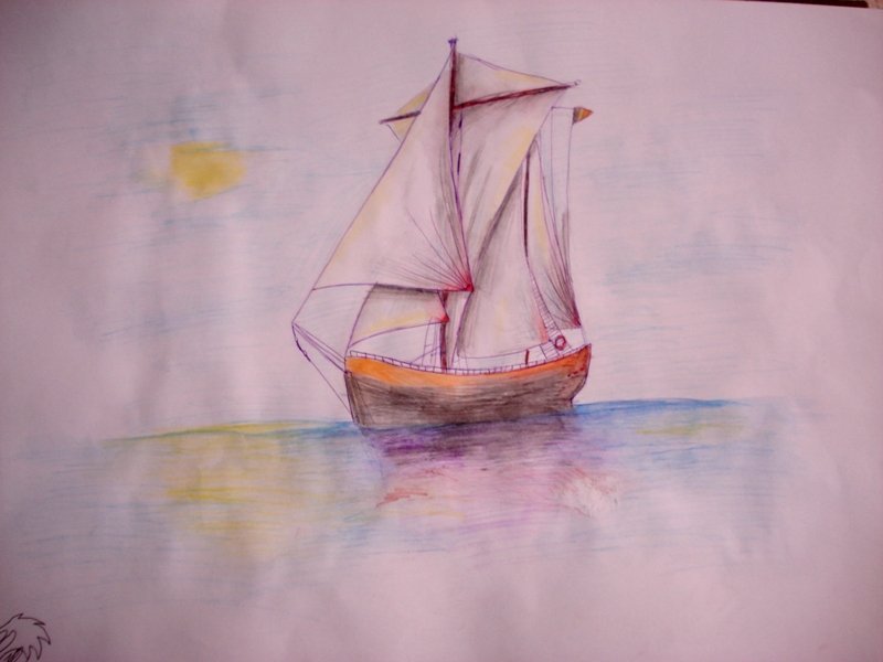 ![Парусник акварельными карандашами]()