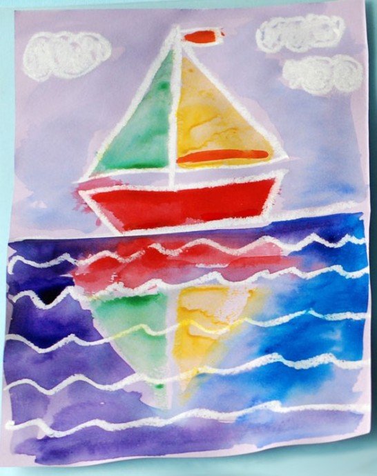 Парусник рисунок для детей гуашь