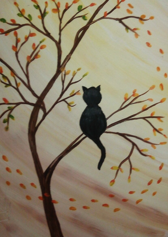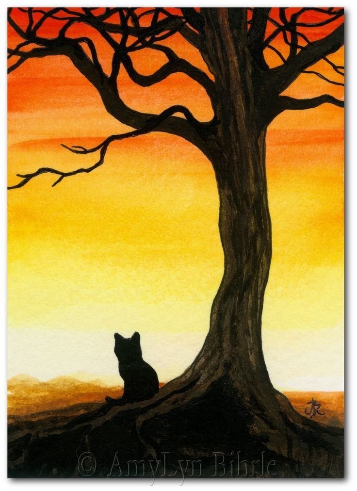 ![Кошки на дереве живопись]()