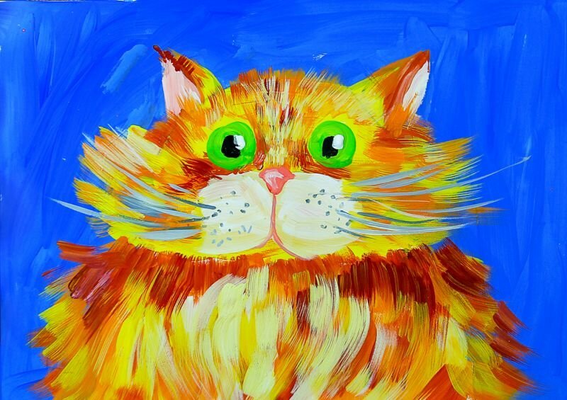 Кот красками для детей
