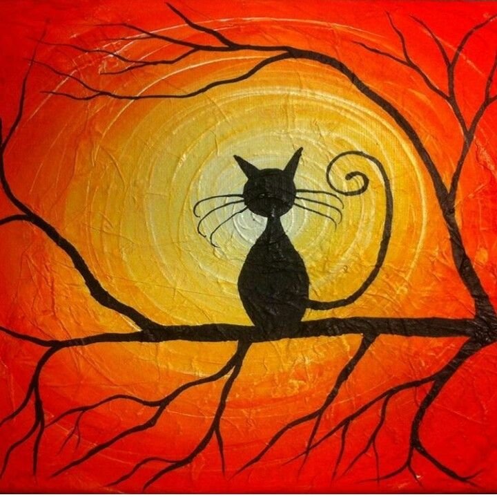 ![Силуэтная живопись кошки]()