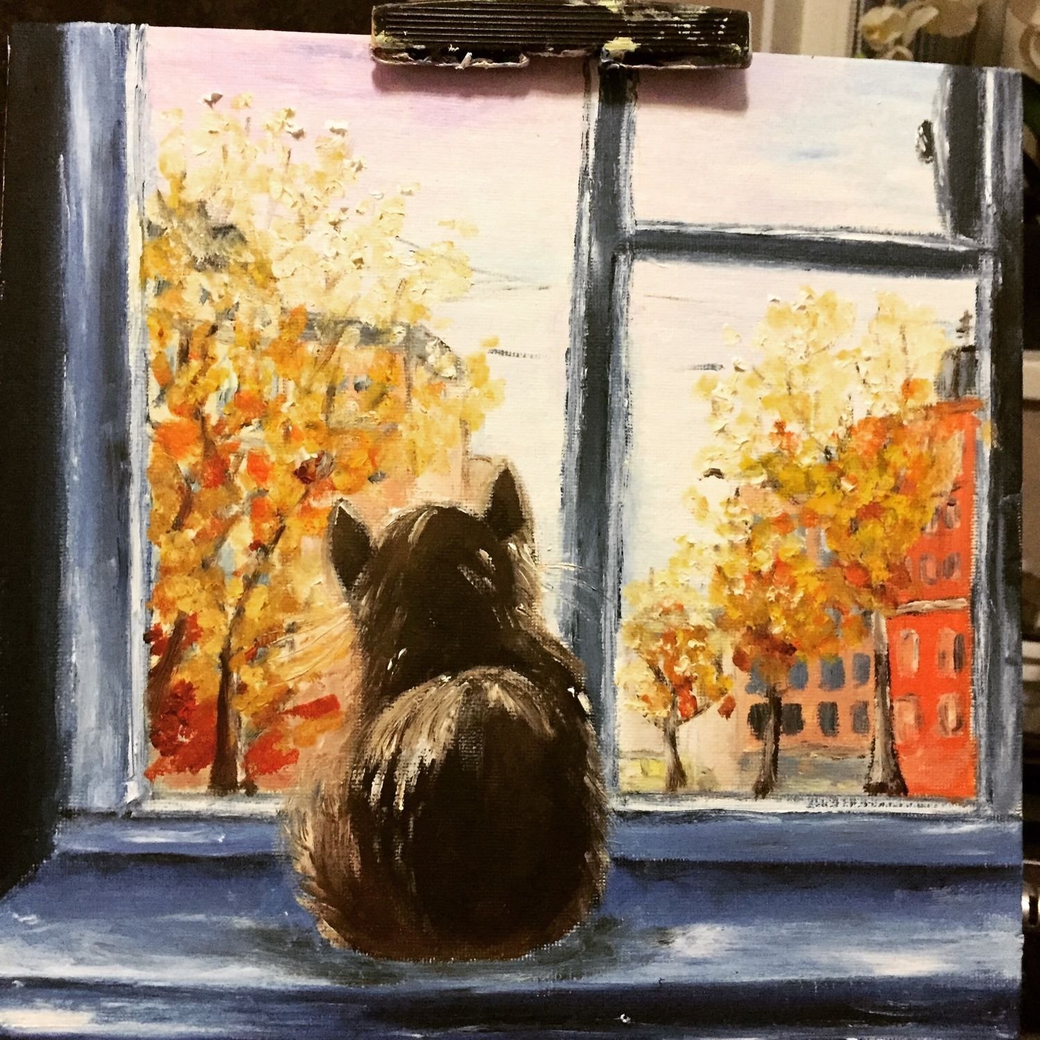 ![Осень в окне живопись]()