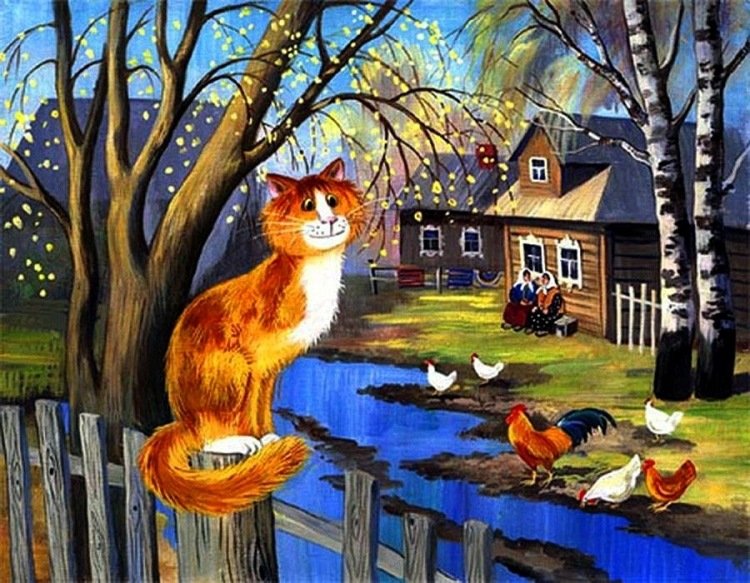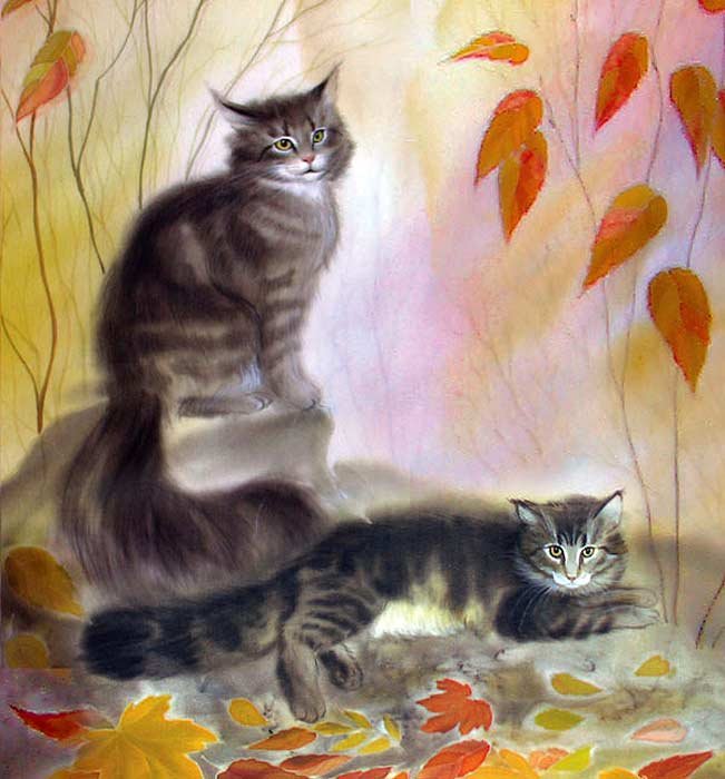 ![Осенние коты живопись]()