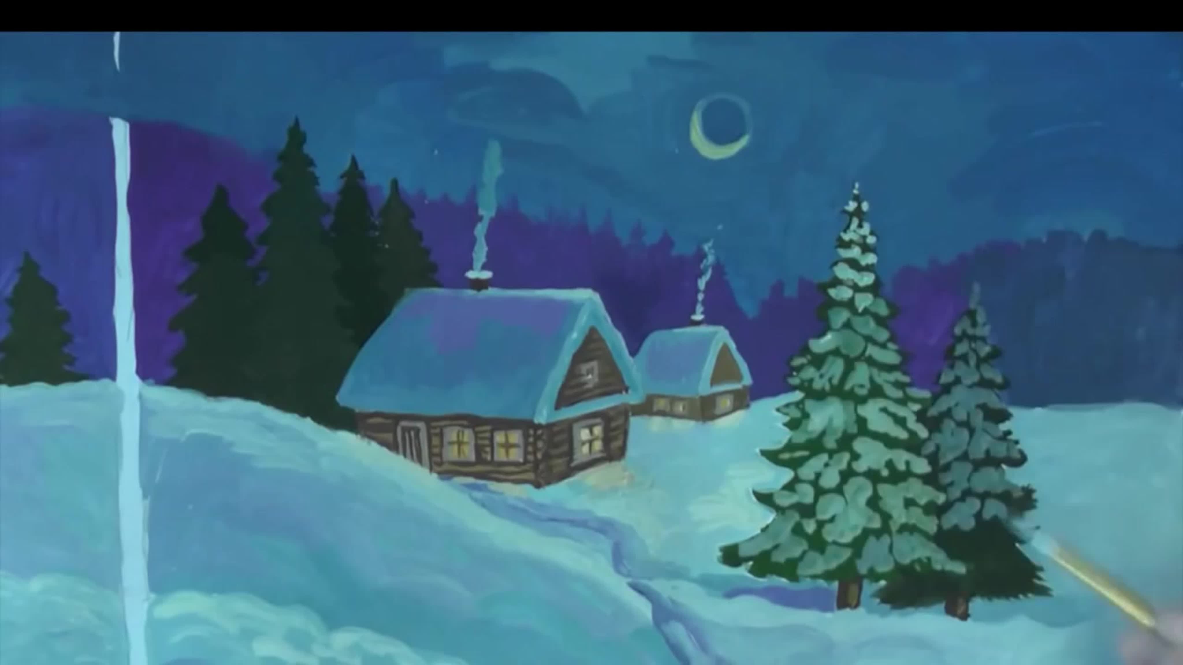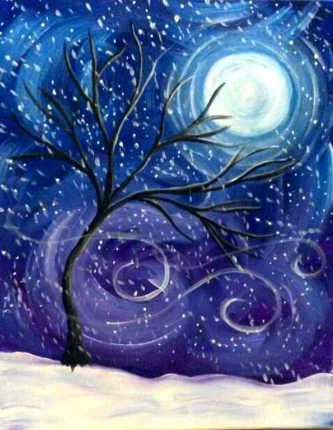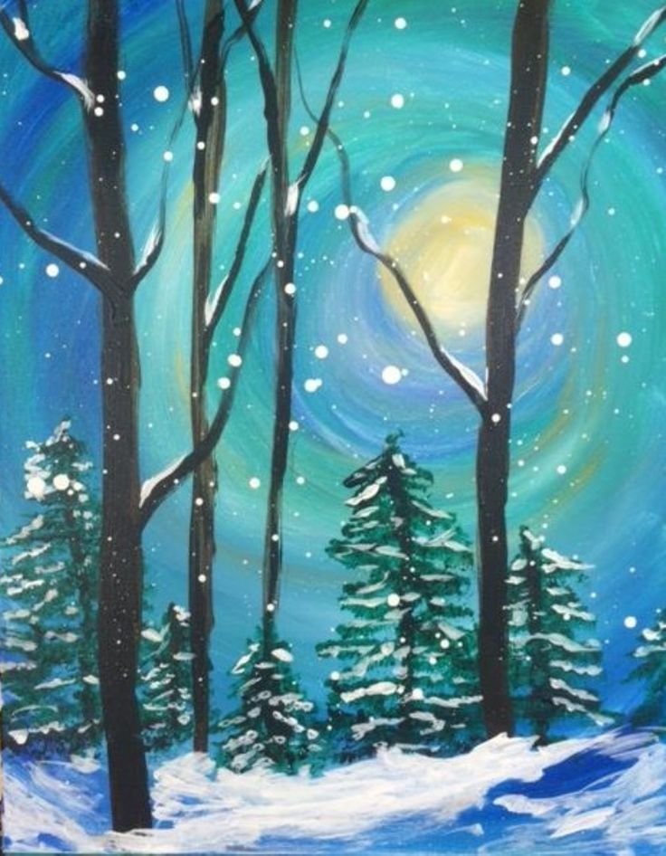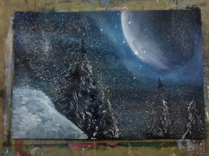![Ночной зимний пейзаж красками]()