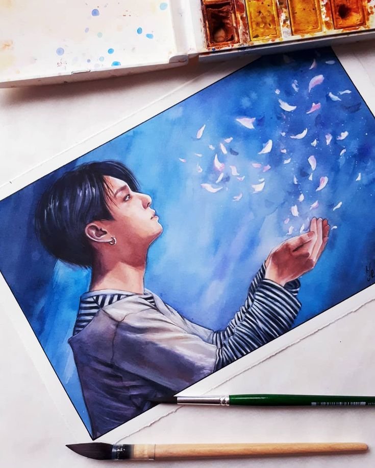 Рисунок гуашью БТС - это непревзойденное искусство, которое захватывает сердца миллионов поклонников по всему миру. Гуашь - это техника живописи, в которой используются яркие и насыщенные краски, и она прекрасно подходит для создания потрясающих портретов участников группы БТС. Благодаря этой технике художник может передать каждую деталь и эмоцию лиц участников, воссоздавая их неповторимый стиль и образы. Рисунок гуашью БТС - это не только великолепное произведение искусства, но и возможность проникнуться атмосферой энергии и эмоций, которые испускают эти талантливые и каризматичные артисты. Откройте для себя мир рисунка гуашью БТС и окунитесь в магию их творчества!