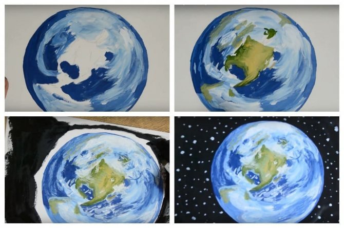 ![Земля с космоса гуашью]()