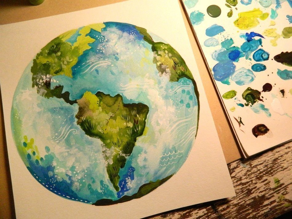 ![Планета земля гуашью]()