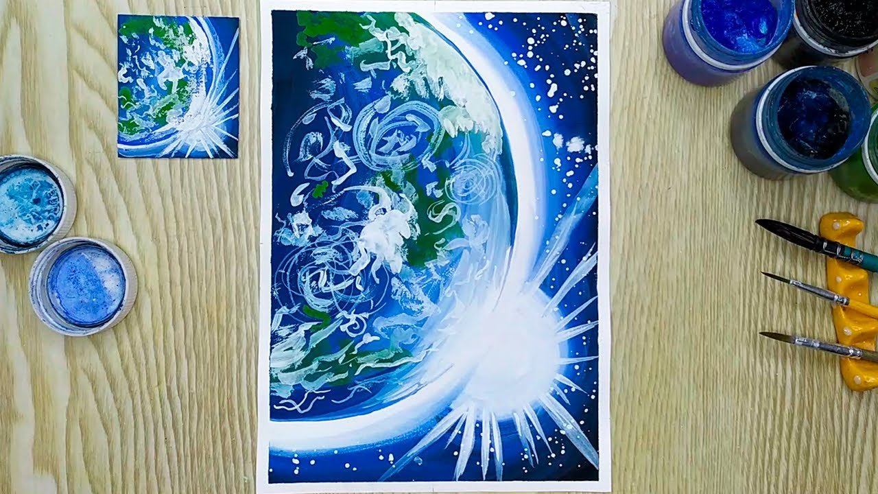 Земля с космоса гуашью