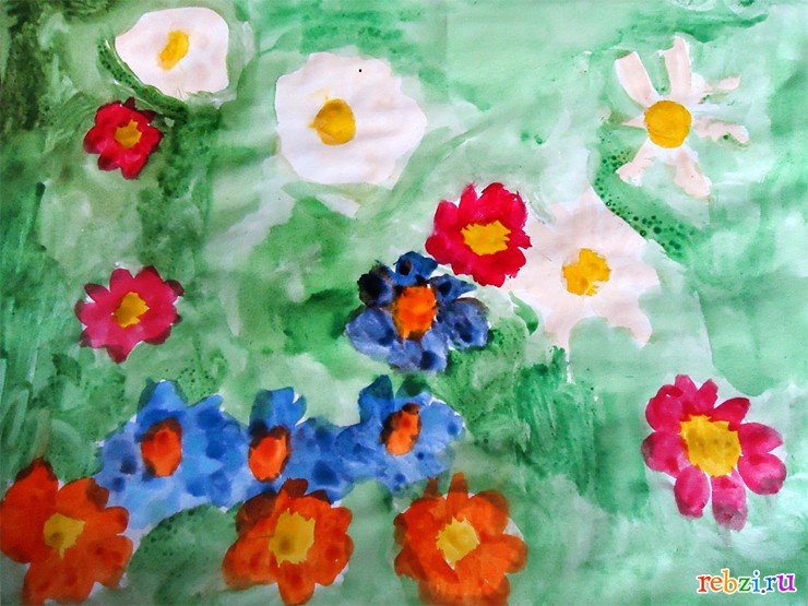 Рисование «Цветочная Поляна» (капельный метод кляксографии)