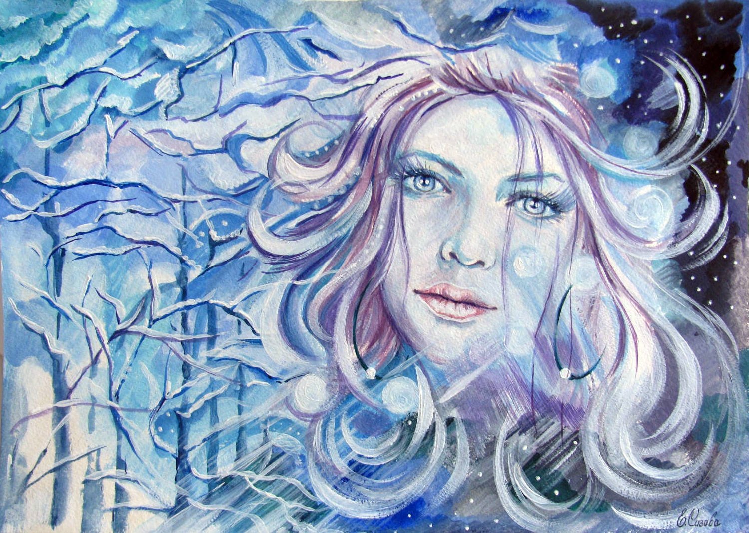 Портрет снежной королевы гуашью
