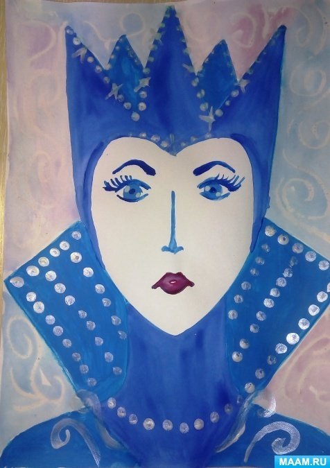 ![Портрет снежной королевы гуашью]()
