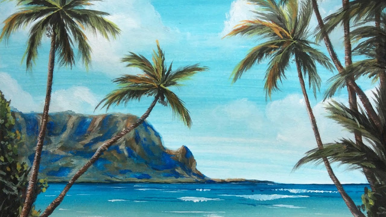 Пейзаж с пальмой красками