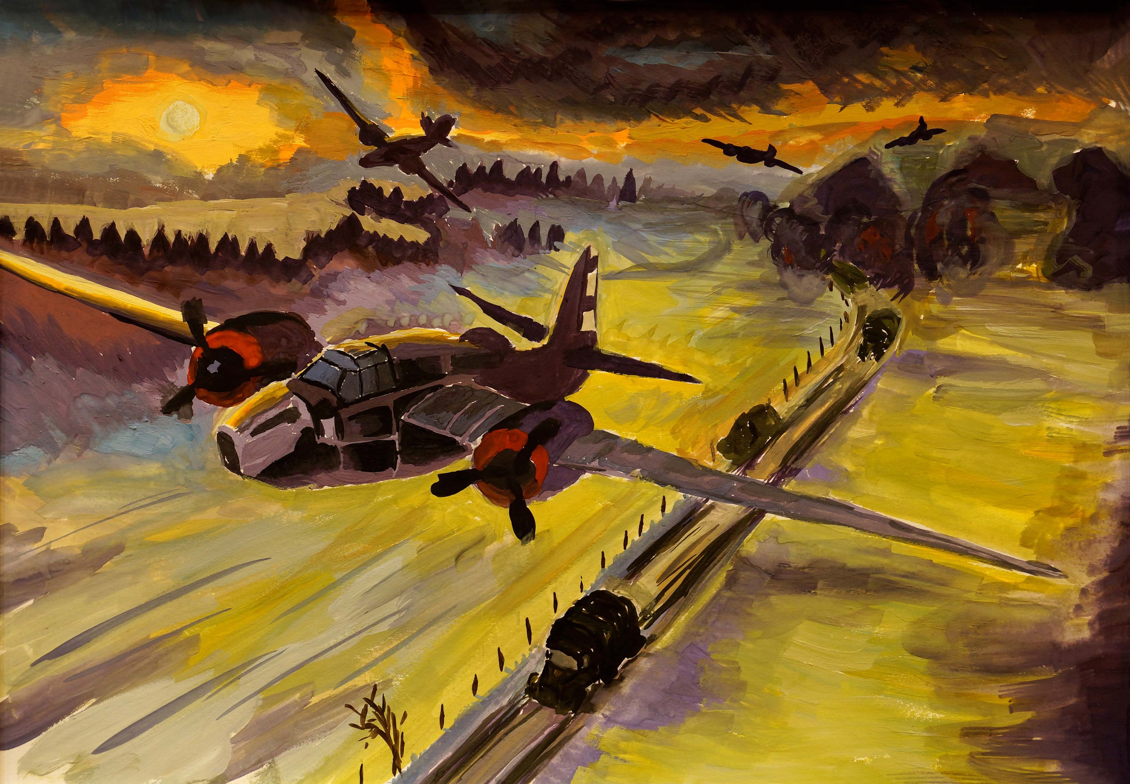 Военный рисунок гуашью - это уникальное и оригинальное искусство, которое погружает зрителя в атмосферу сражений, героизма и мужества. Используя яркие и сочные цвета, гуашь позволяет передать выразительность и эмоциональность каждой детали на рисунке. Военные сцены, портреты солдат или живописные пейзажи военных полей оживают на бумаге благодаря мастерству художника. Каждая красочная капля гуаши создает глубину и объем, делая рисунок реалистичным и притягательным для зрителей. Военный рисунок гуашью не только отображает исторические события, но и передает чувства и эмоции, связанные с боевой атмосферой, что делает его по-настоящему уникальным и захватывающим.