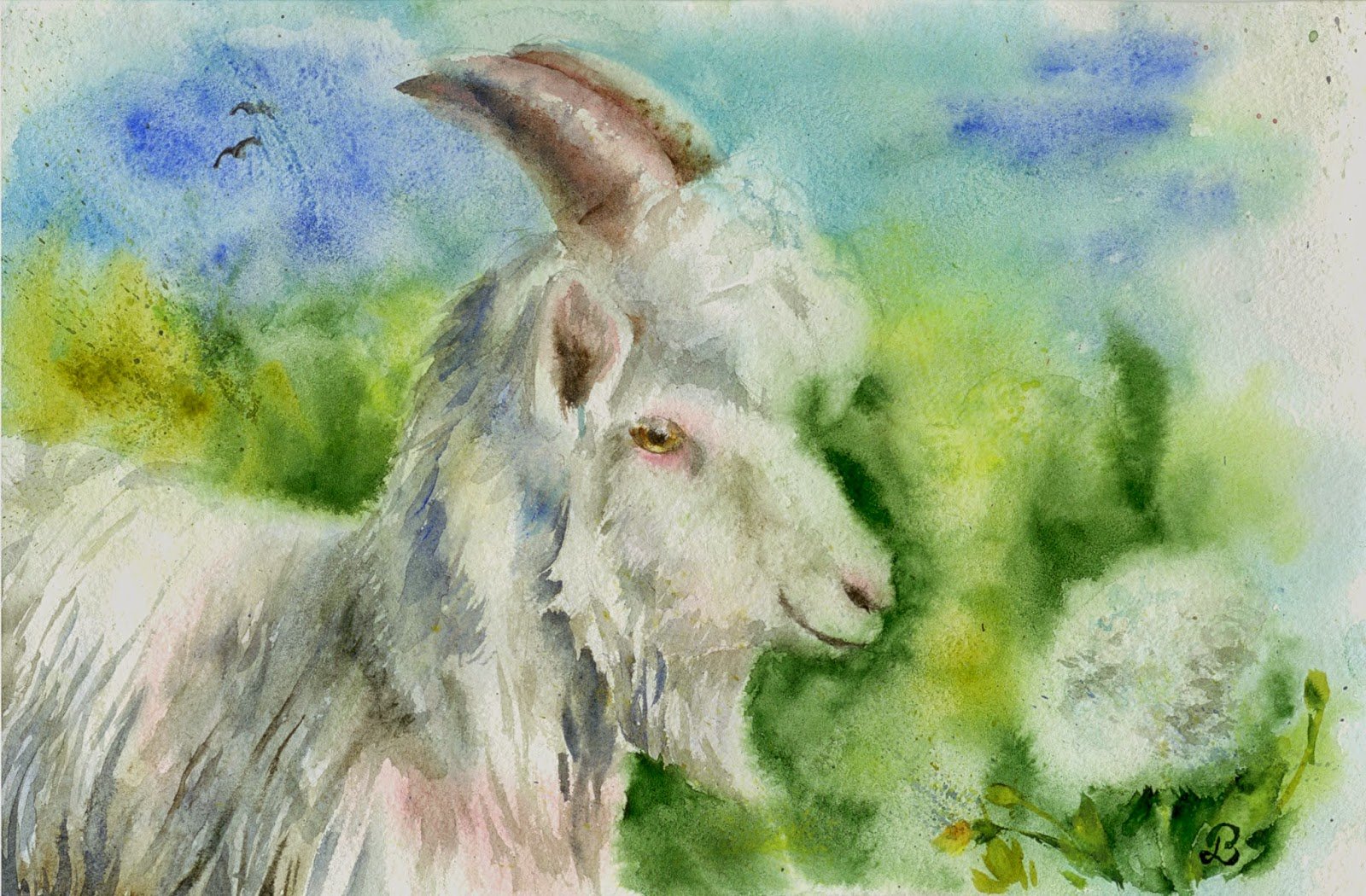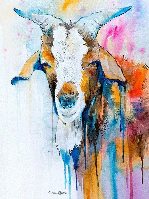 ![Коза акварель]()