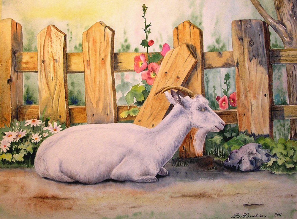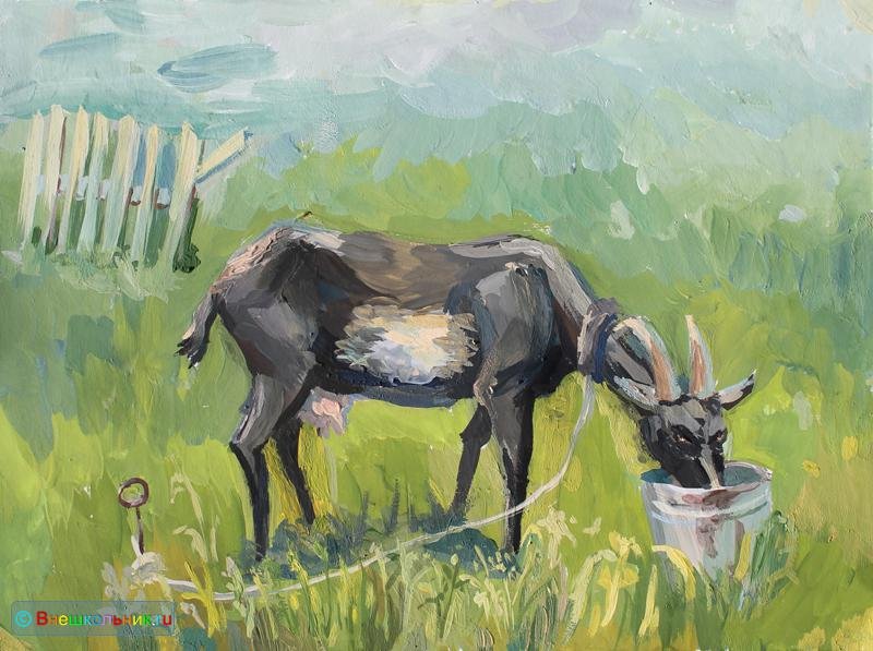 ![Живопись козы гуашью]()