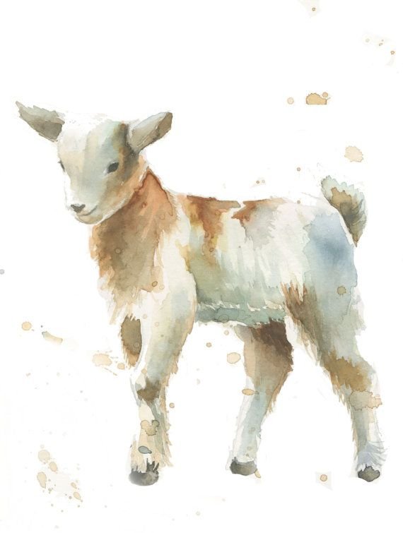 Иллюстрации животных на белом фоне коза акварелью