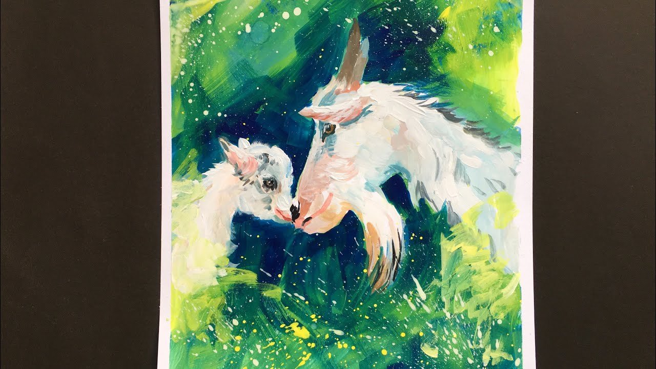 Живопись козы гуашью