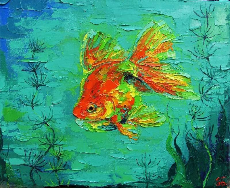 ![Золотая рыбка красками]()