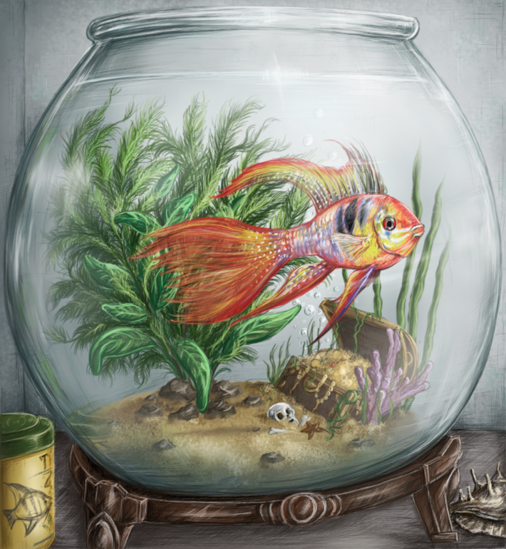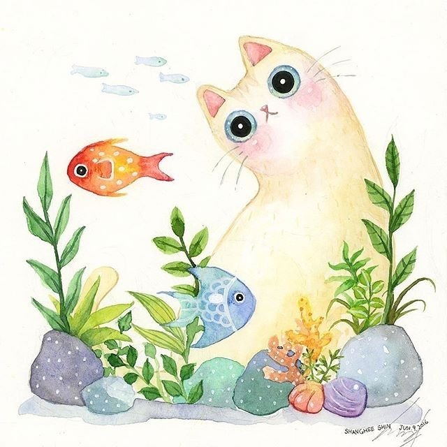 ![Акварель рыбки в аквариуме]()