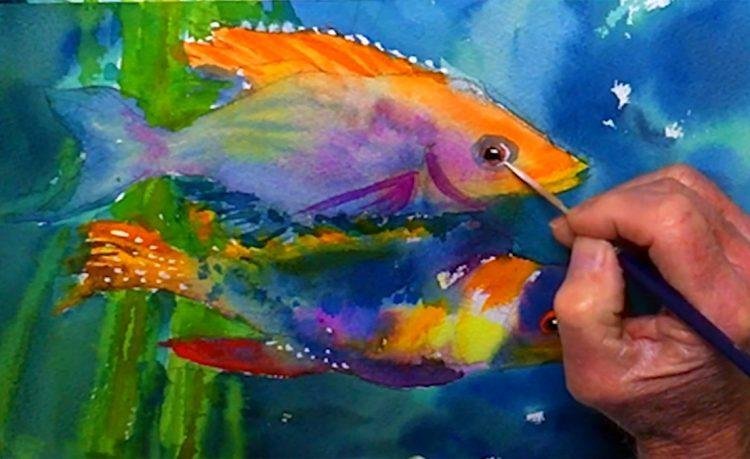 Рыбка акварелью для начинающих