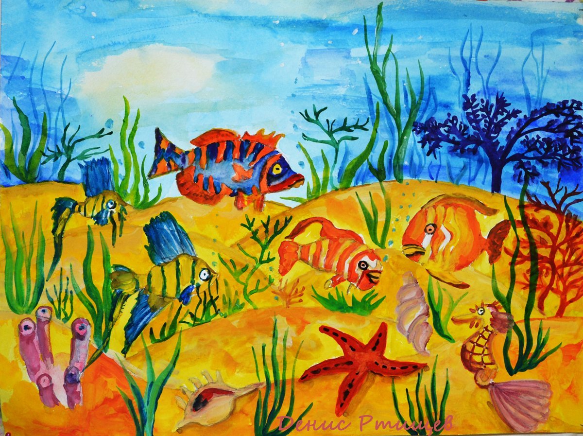 ![Детские рисунки аквариум]()