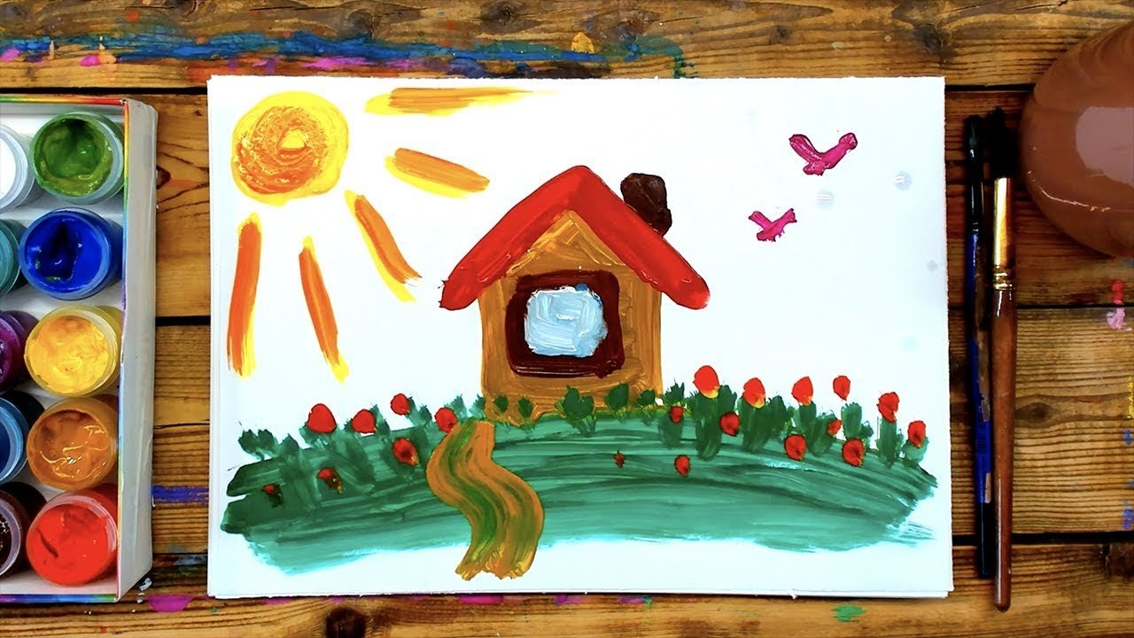 ![Домик красками для детей]()