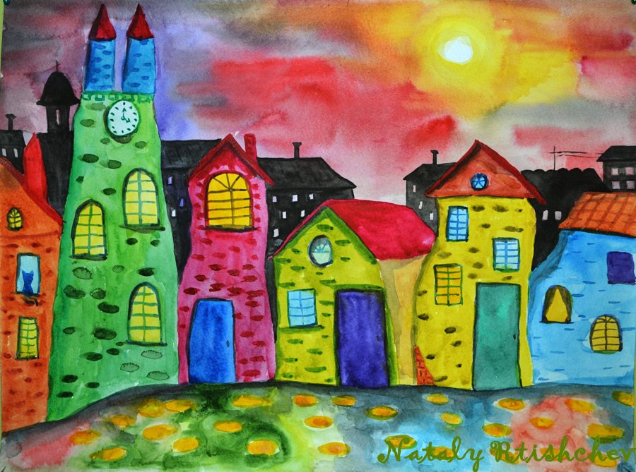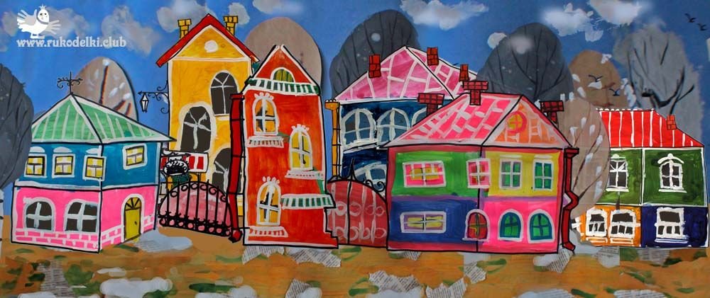 ![Живопись гуашью - городские домики]()