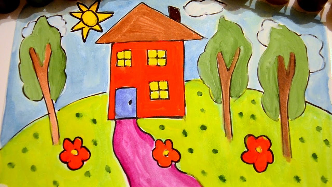 Рисование домика красками