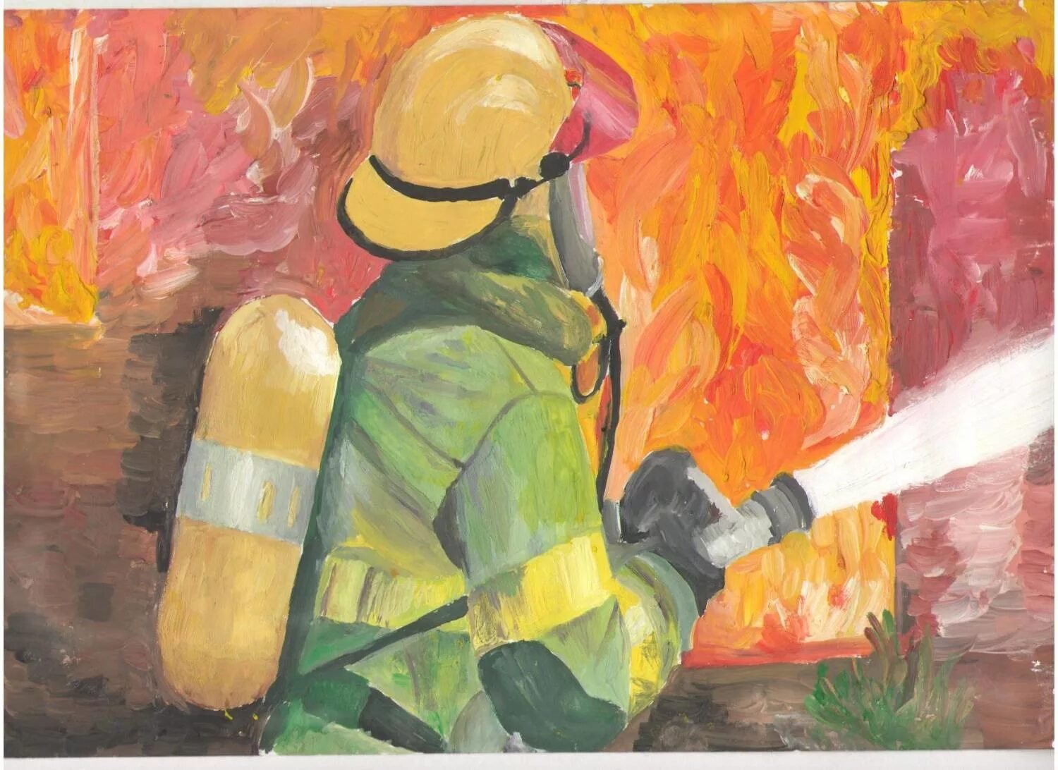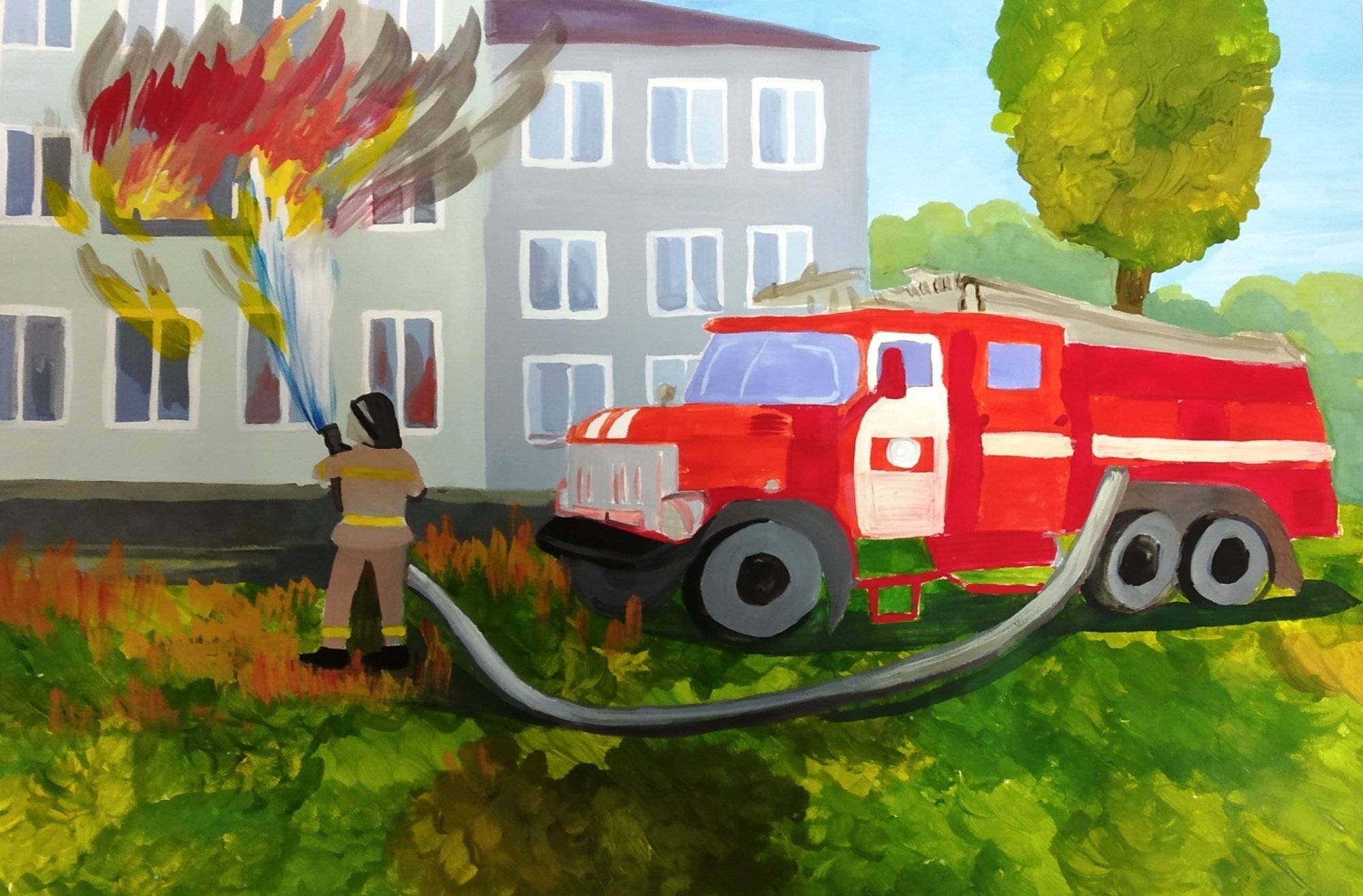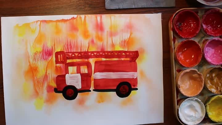 Пожарный рисунок гуашью