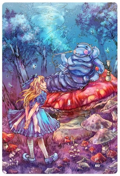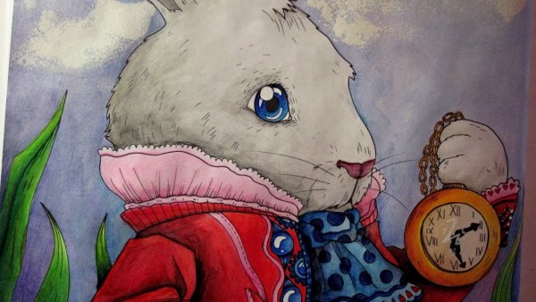 ![Иллюстрация Алиса в стране чудес гуашь]()
