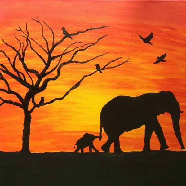 Рисование африканского слона на закате