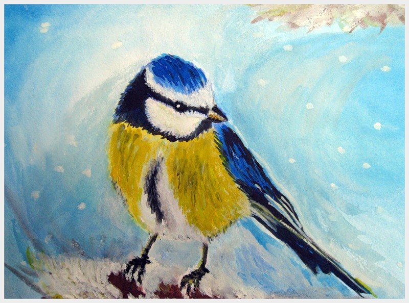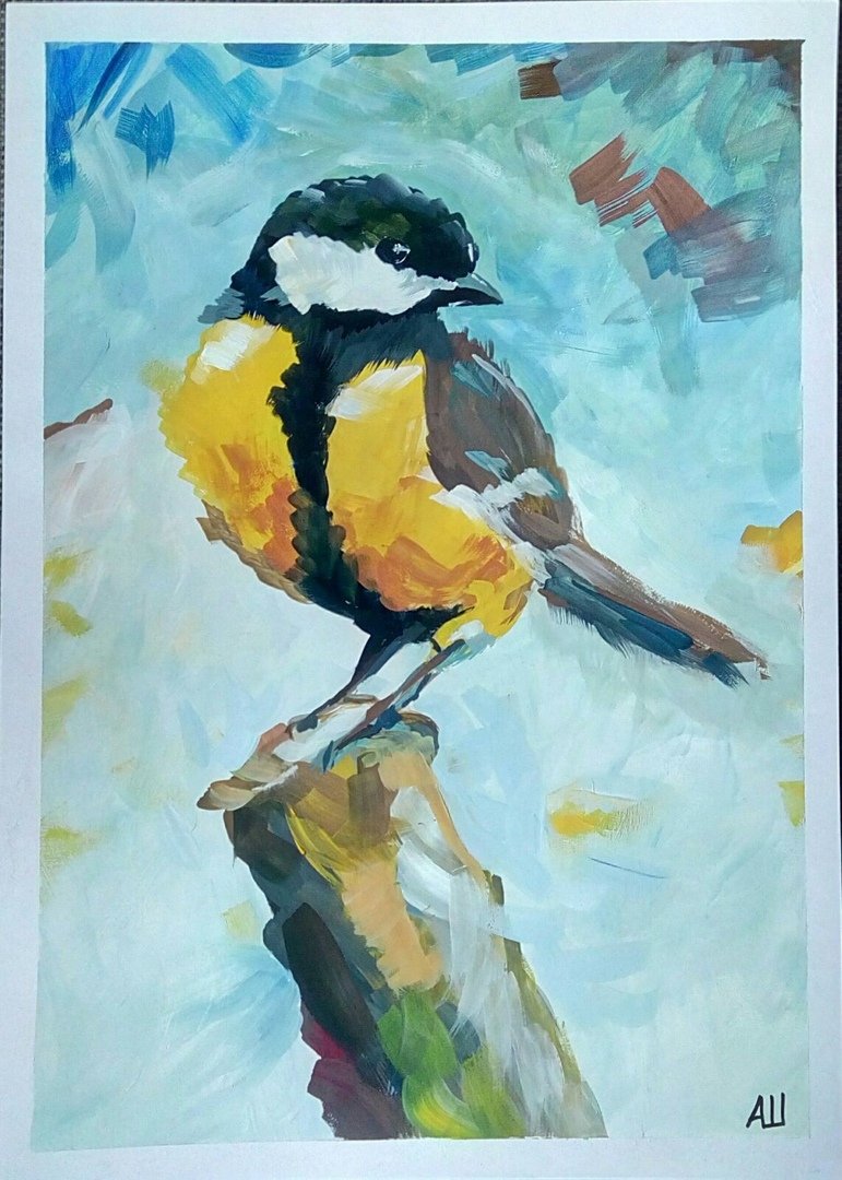 ![Синичка гуашью]()