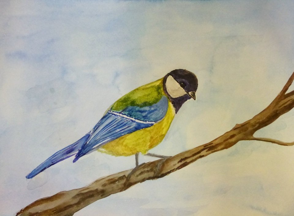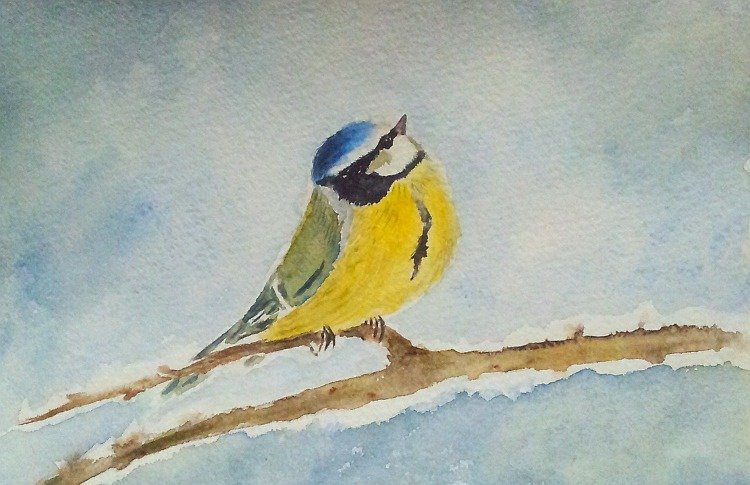 Синица акварелью