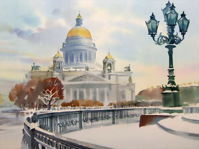 ![Исаакиевский собор в Санкт-Петербурге акварелью]()