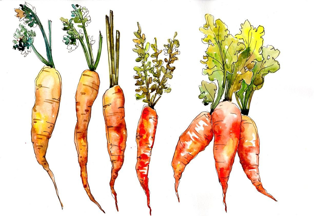 Акварельные скетчи морковь