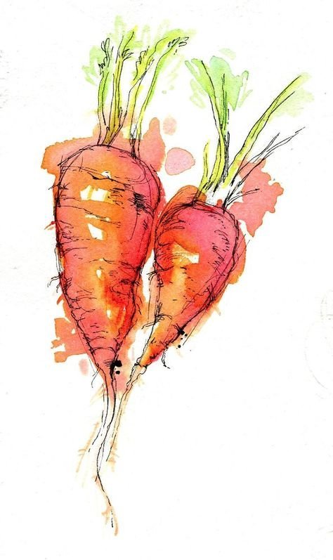 ![Акварельные скетчи морковь]()