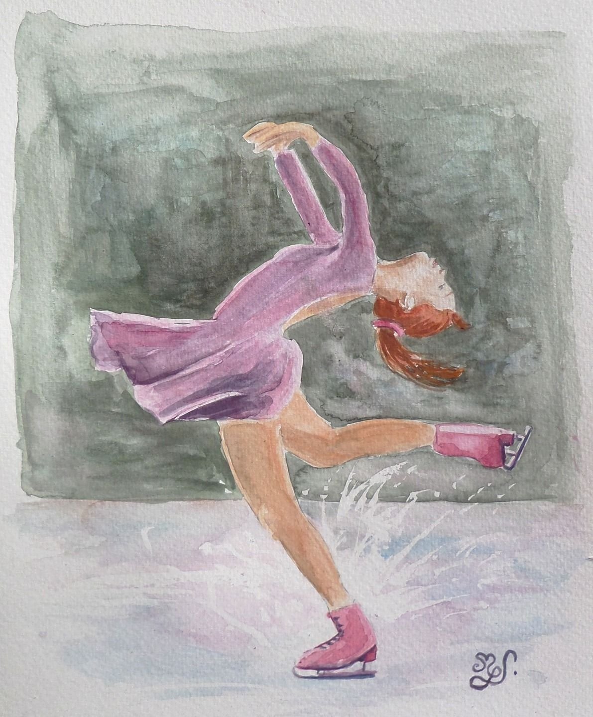 Фигуристка акварель