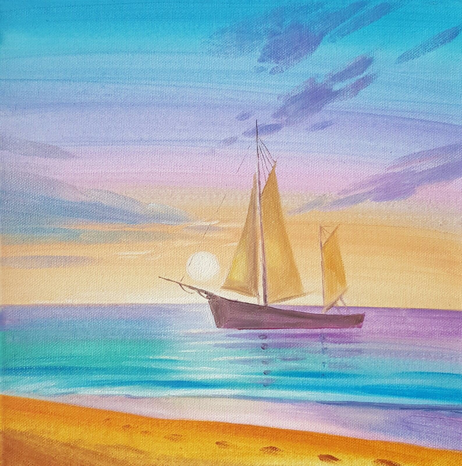![Закат на море акварелью]()
