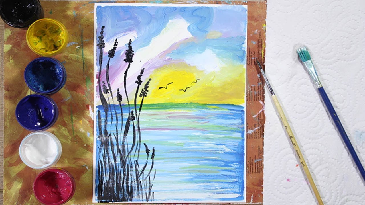 ![Рассвет гуашью]()