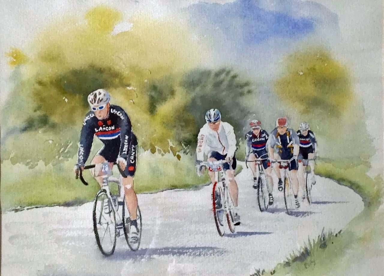 ![Велосипедисты живопись]()