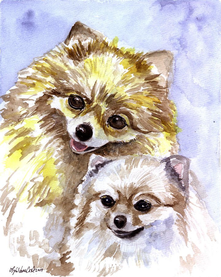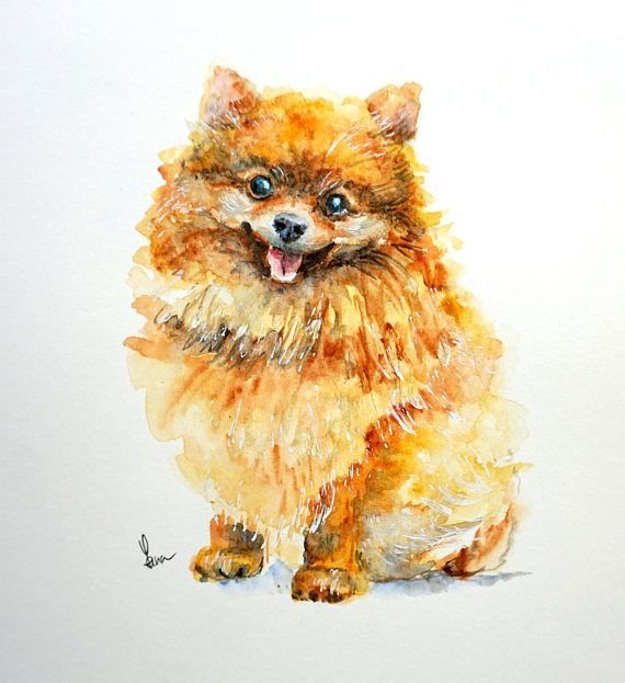 ![Померанский шпиц акварелью]()