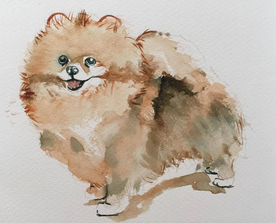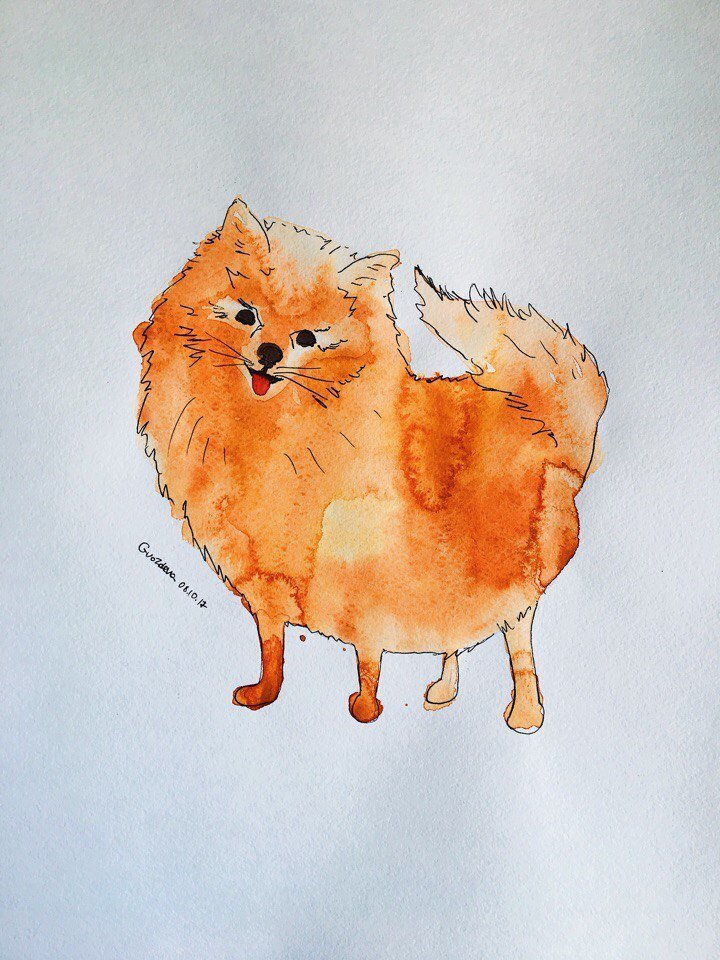 ![Шпиц рисунок акварелью]()