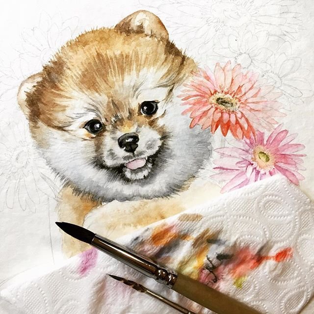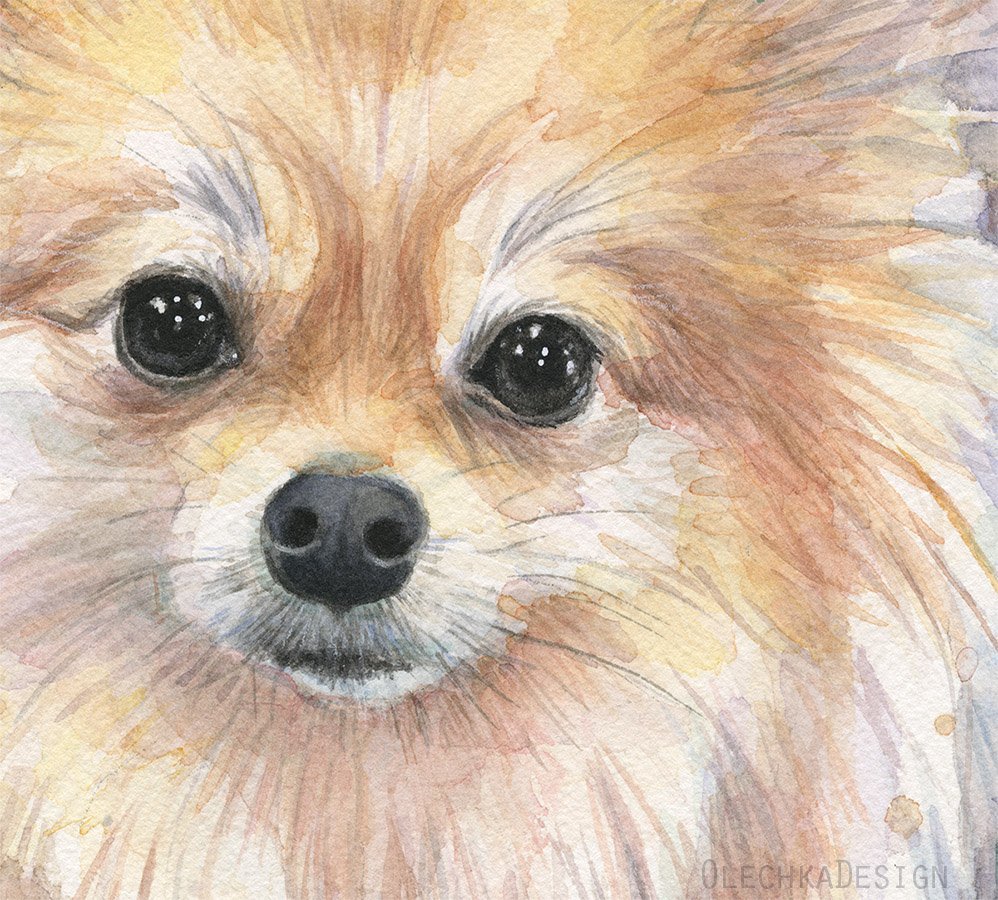 ![Шпиц акварелью]()