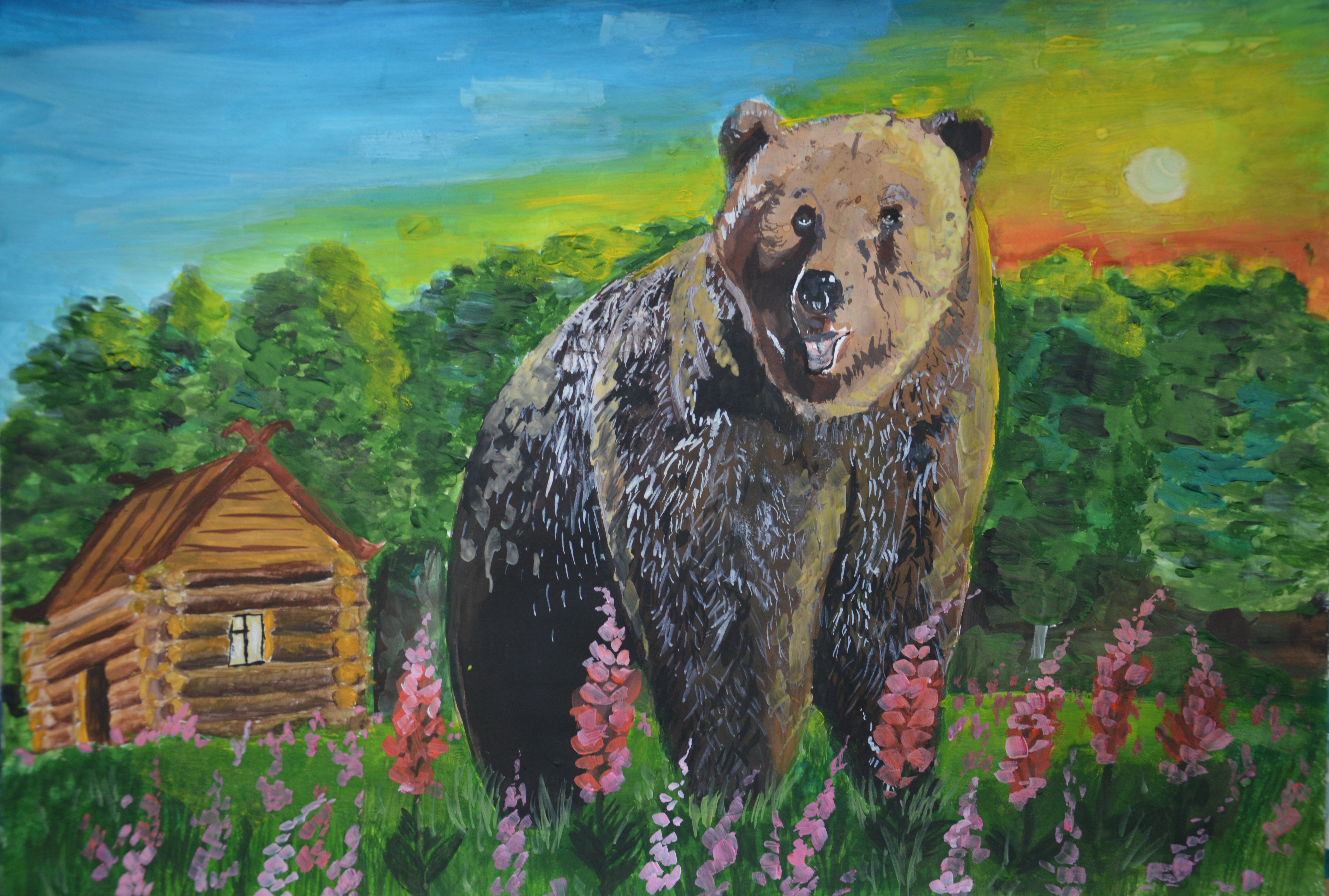 Медведь красками