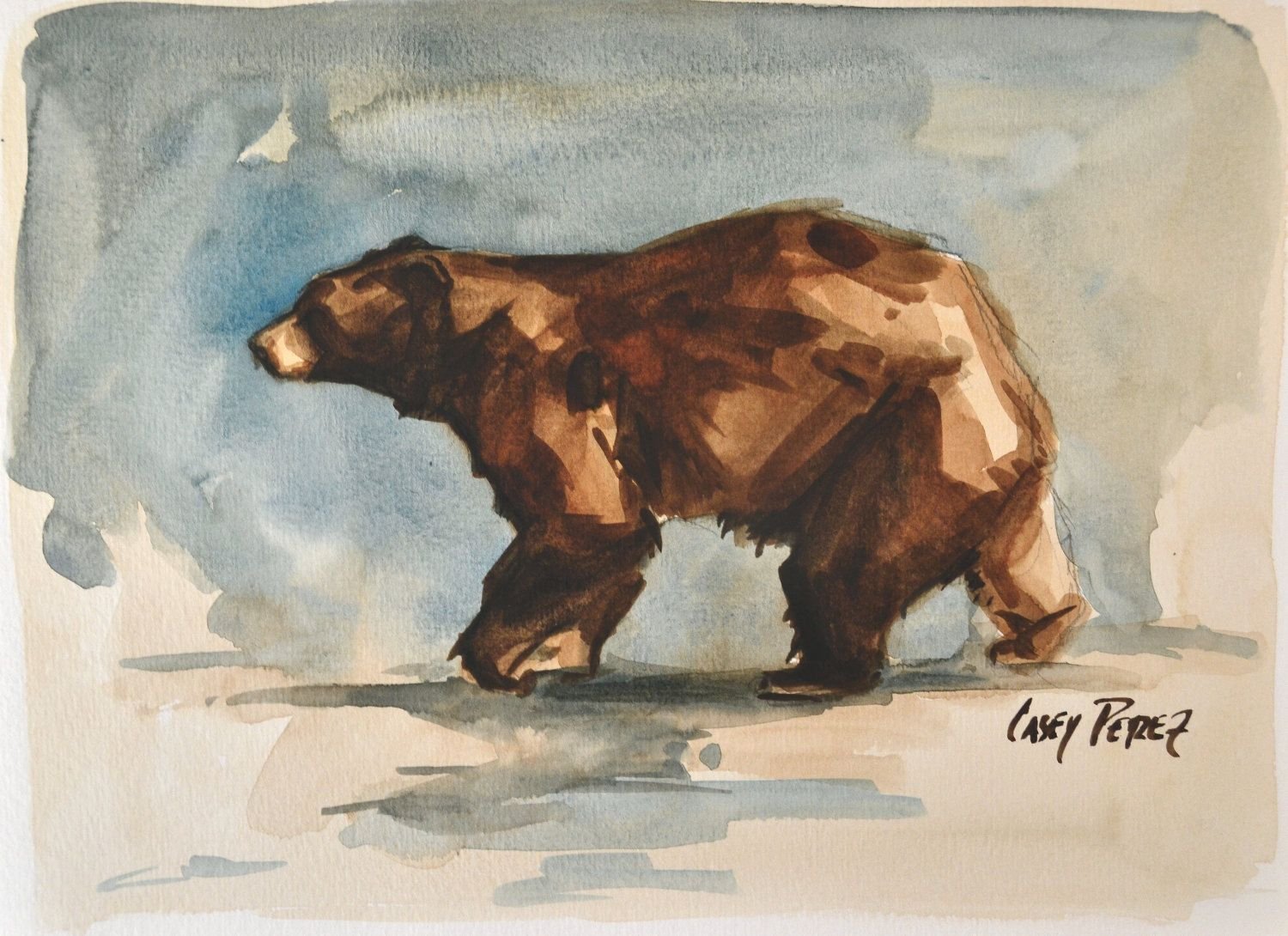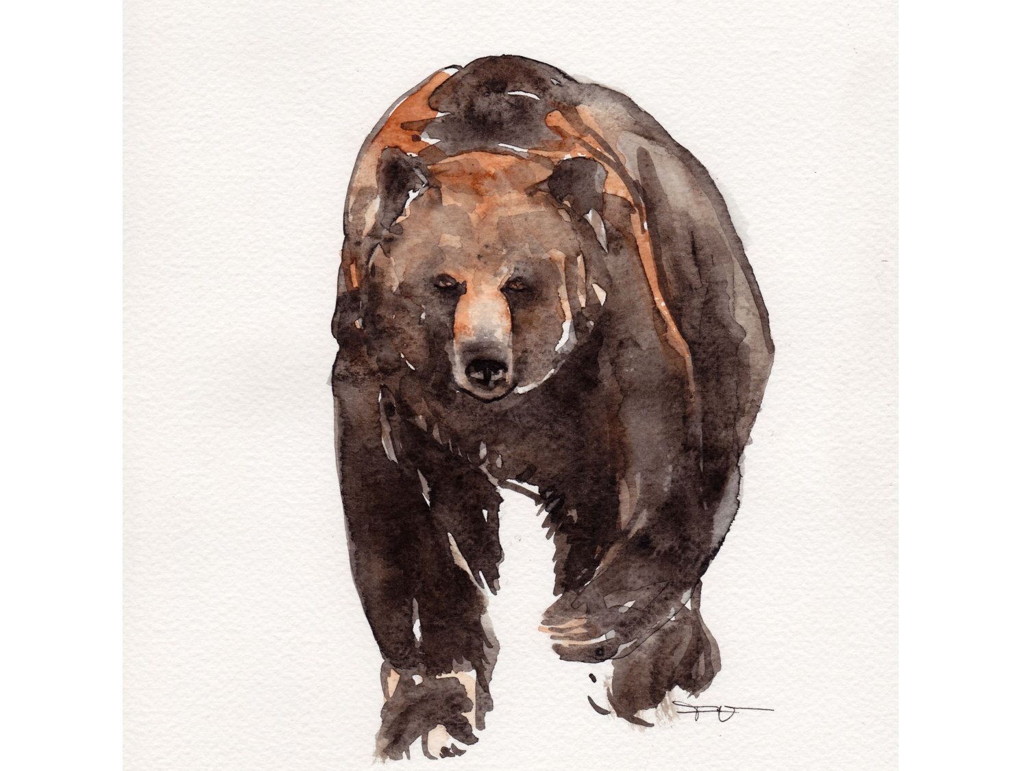 Медведь акварелью