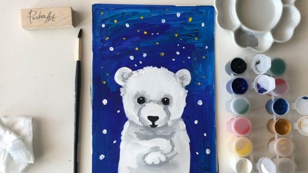 Белый медведь гуашью