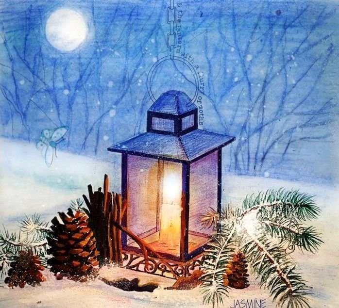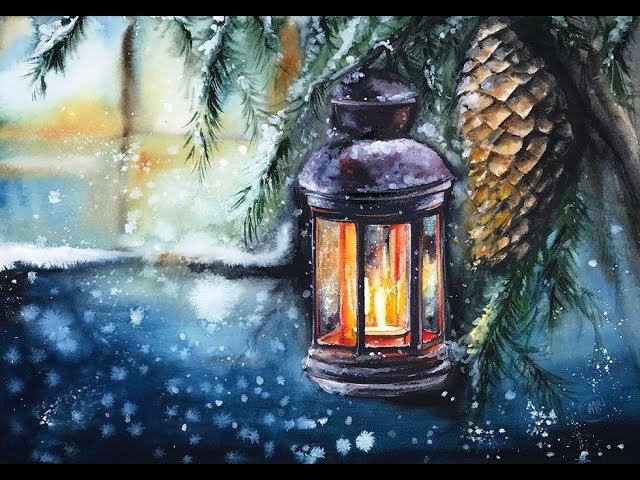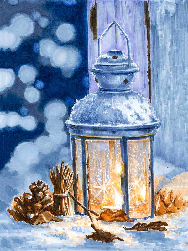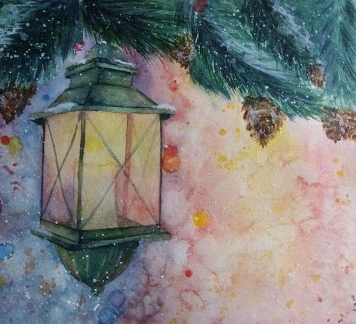 Зимний фонарик акварелью