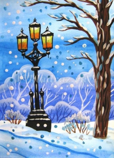 Рисунок уличного фонаря гуашью