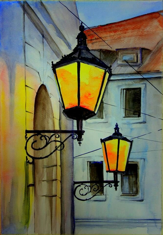 Идеи для рисования акварелью фонарь