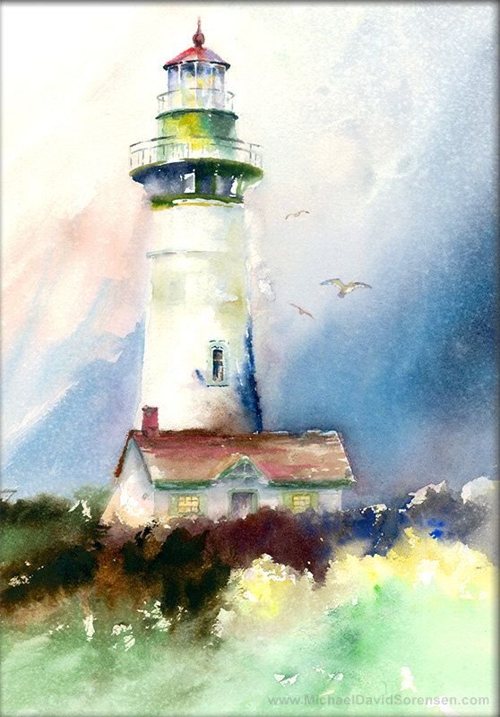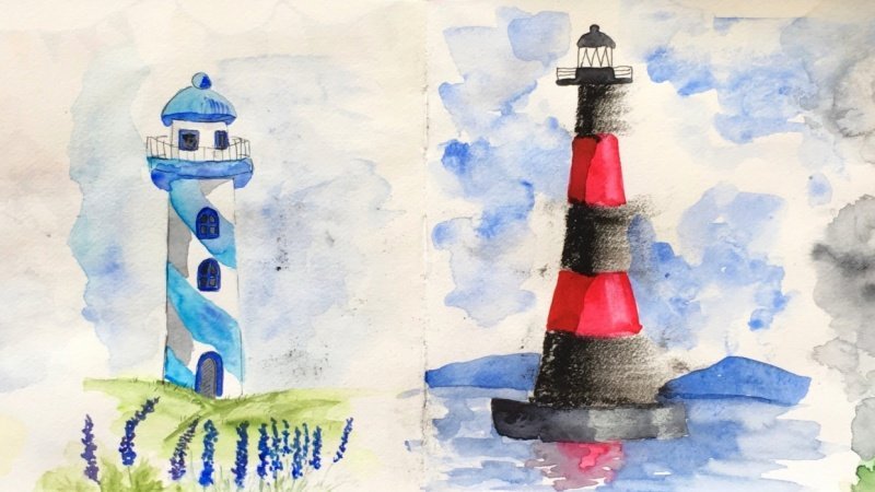 Маяк акварелью для детей